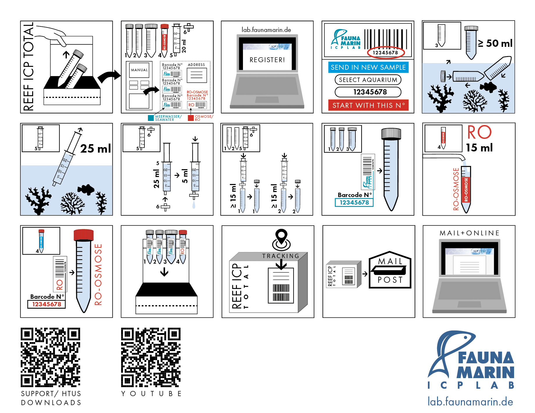 - Ältere Testkits mit 3- oder 4-stelligen Proben-IDs können nicht online angemeldet werden, bitte das beiliegenden Formular ausfüllen und zusammen mit der Probe einschicken. Lege trotzdem auf der Laborwebseite einen Account mit Aquarium an!